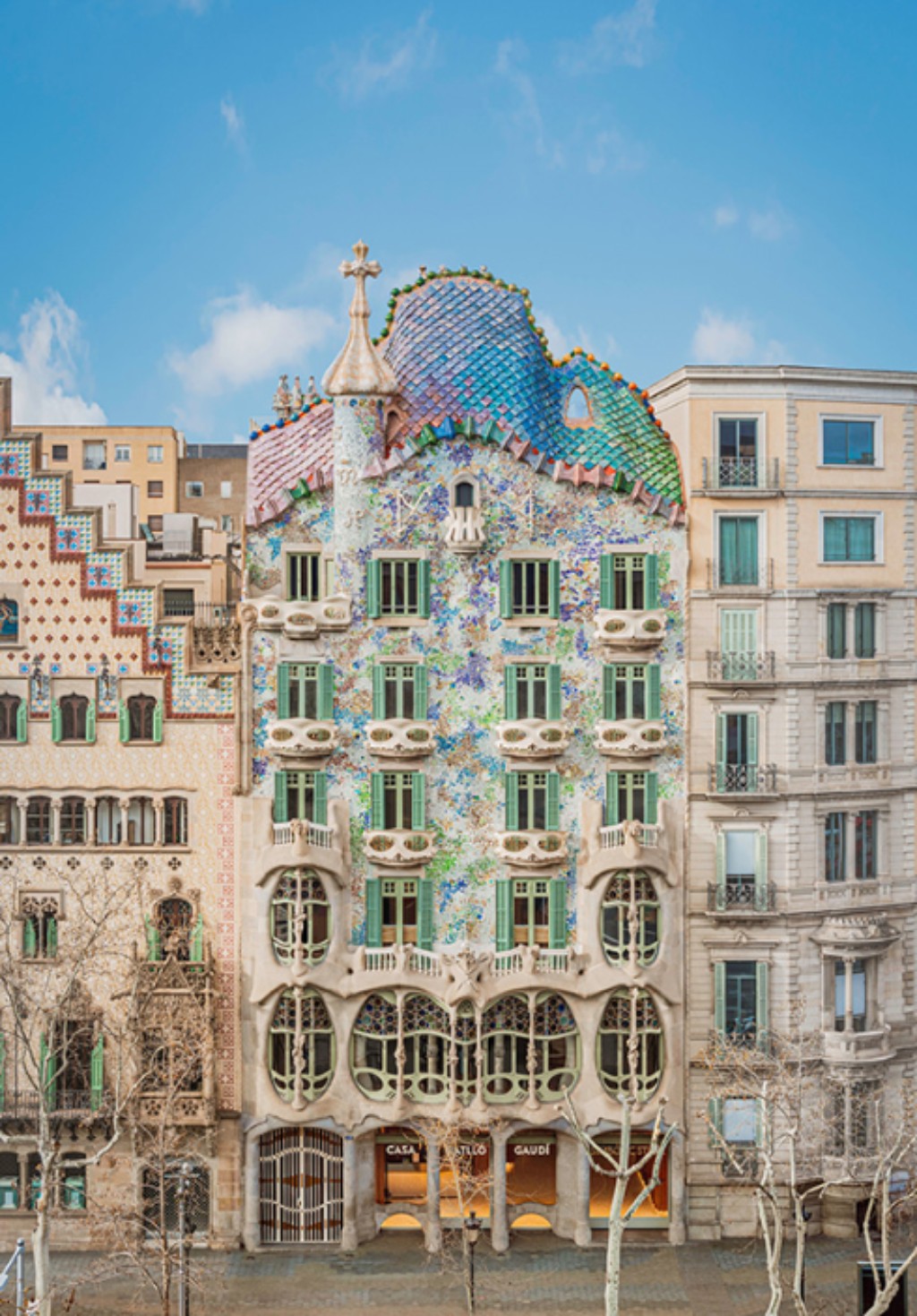 A Casa Batlló (1904-1906) é uma das obras mais fantásticas do Art Nouveau. Gaudí remodelou um edifício existente, transformando-o em algo que parece mais organismo vivo que construção. A fachada ondula como se estivesse em movimento, coberta por mosaicos de cerâmica em tons de azul e verde que sugerem escamas ou a superfície da água. Não há linha reta em toda a construção. Janelas em formas irregulares lembram caveiras ou máscaras. Balcões de ferro fundido parecem esqueletos ou talvez conchas marinhas.