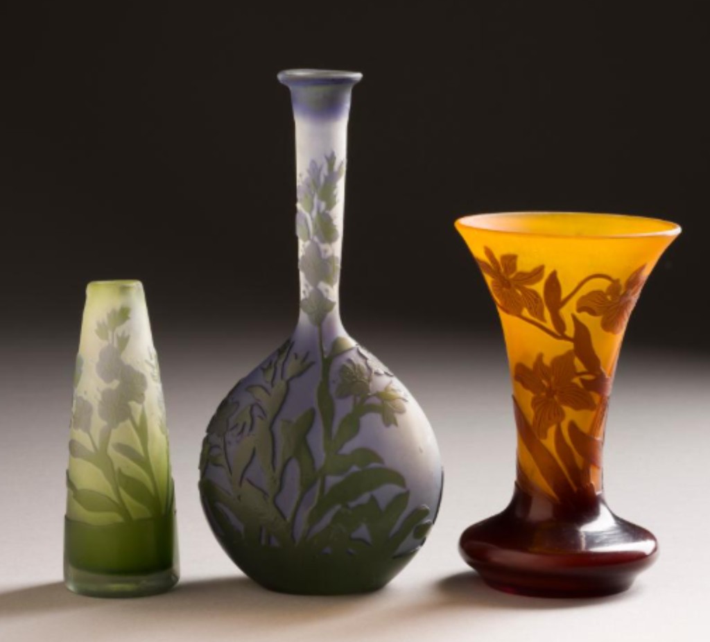Émile Gallé revolucionou o trabalho em vidro e mobiliário na França. Baseado em Nancy, Gallé criou vasos e luminárias de vidro com técnicas inovadoras. Usava múltiplas camadas de vidro colorido que depois gravava ou corroía com ácido para criar imagens tridimensionais. Flores, insetos e paisagens emergiam do vidro em relevos delicados.