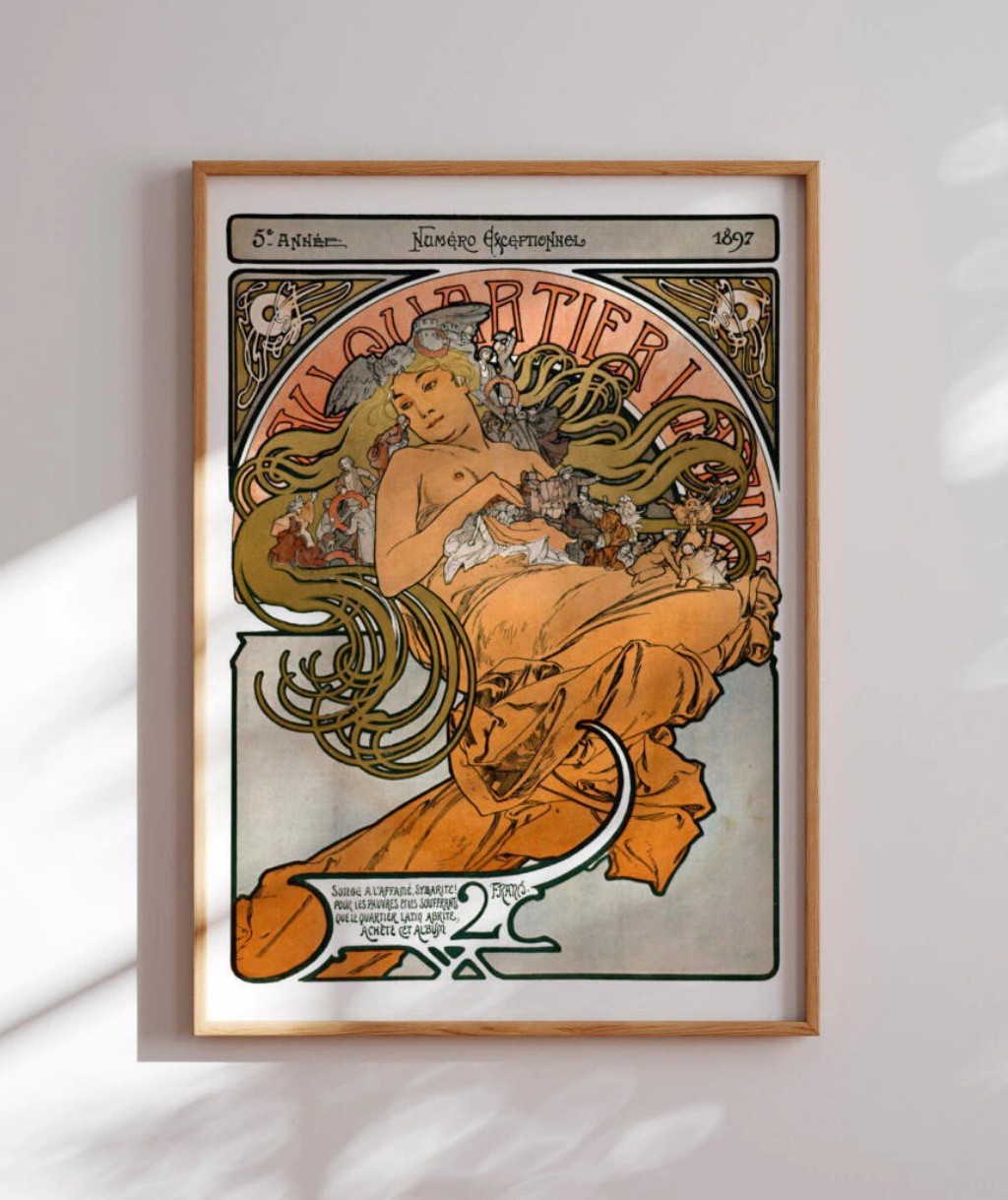 Alphonse Mucha tornou-se o mestre indiscutível do cartaz Art Nouveau. Nascido na Morávia (atual República Tcheca) em 1860, Mucha mudou-se para Paris em 1887 para estudar arte. Sua grande chance veio em dezembro de 1894, quando aceitou um pedido de última hora para criar um cartaz para a atriz Sarah Bernhardt, que estava estrelando a peça "Gismonda" no Théâtre de la Renaissance.