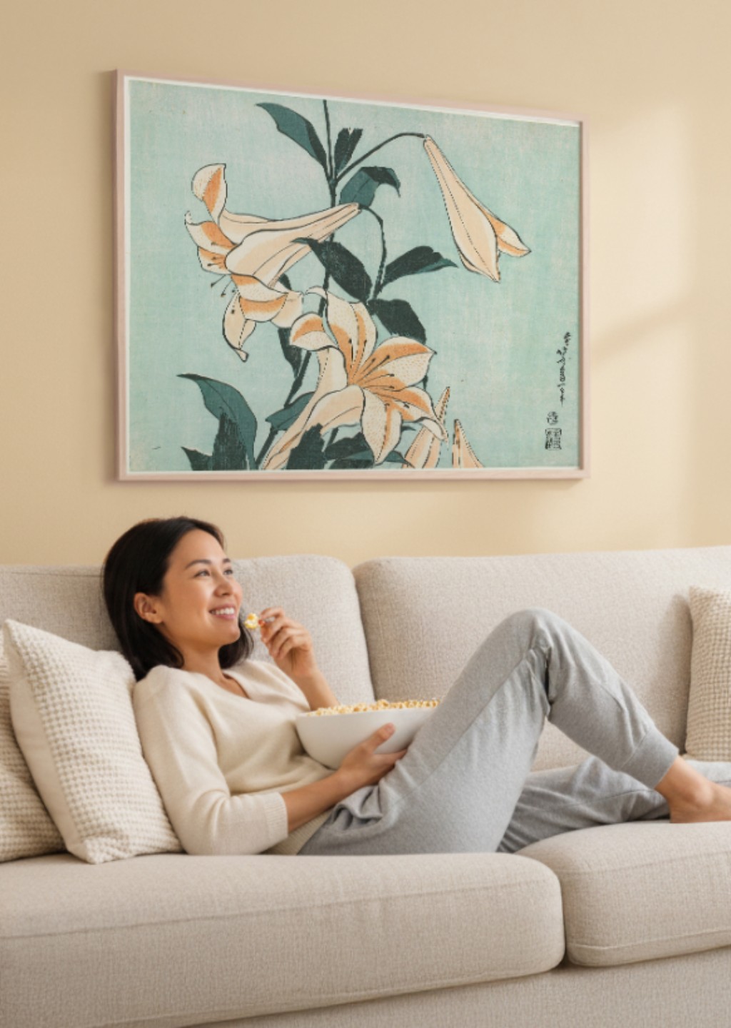 A tradição japonesa da arte botânica, particularmente no estilo ukiyo-e e shin-hanga, representada por mestres como Ohara Koson, alcançou um grau de essência formal e delicadeza técnica que tem um apelo massivo na contemporaneidade. Um quadro de lírios amarelos, por exemplo, não busca a exuberância, mas a simplicidade filtrada.