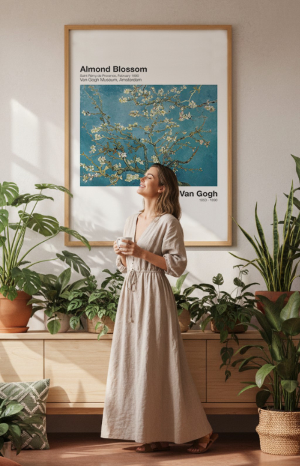 Em um momento de intensa fragilidade emocional e isolamento em um asilo, Van Gogh encontrou no broto da amendoeira uma forma de comunicar o recomeço, a esperança e a continuidade da vida. A composição, que exibe uma forte influência da xilogravura japonesa (evidente no plano de fundo quase uniforme e nos contornos definidos), transforma os galhos em um diagrama energético de vida ascendente. Em 2025, essa imagem volta a ser um ícone da esperança silenciosa, um farol de resiliência em um período de incertezas globais. A obra prova que a representação da flora pode transcender a botânica para se tornar uma linguagem universal de emoção e vulnerabilidade.