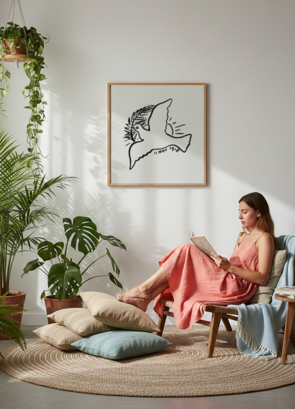 É nesse contexto de guerra e adoecimento que surge Peace Dove (1918) — um desenho de leitura imediata, uma pomba em traço limpo sobre fundo neutro, datado precisamente de 11 de novembro de 1918, o dia do Armistício. A obra não tem a complexidade técnica das grandes telas cubistas, mas tem precisão de intenção: Gestel não era um artista que costumava fazer declarações públicas com pincel, e por isso esse gesto simples pesa mais. A pomba está sozinha, sem ornamento, desenhada com a segurança de quem domina o traço e escolhe a economia como forma de dizer algo com mais força.