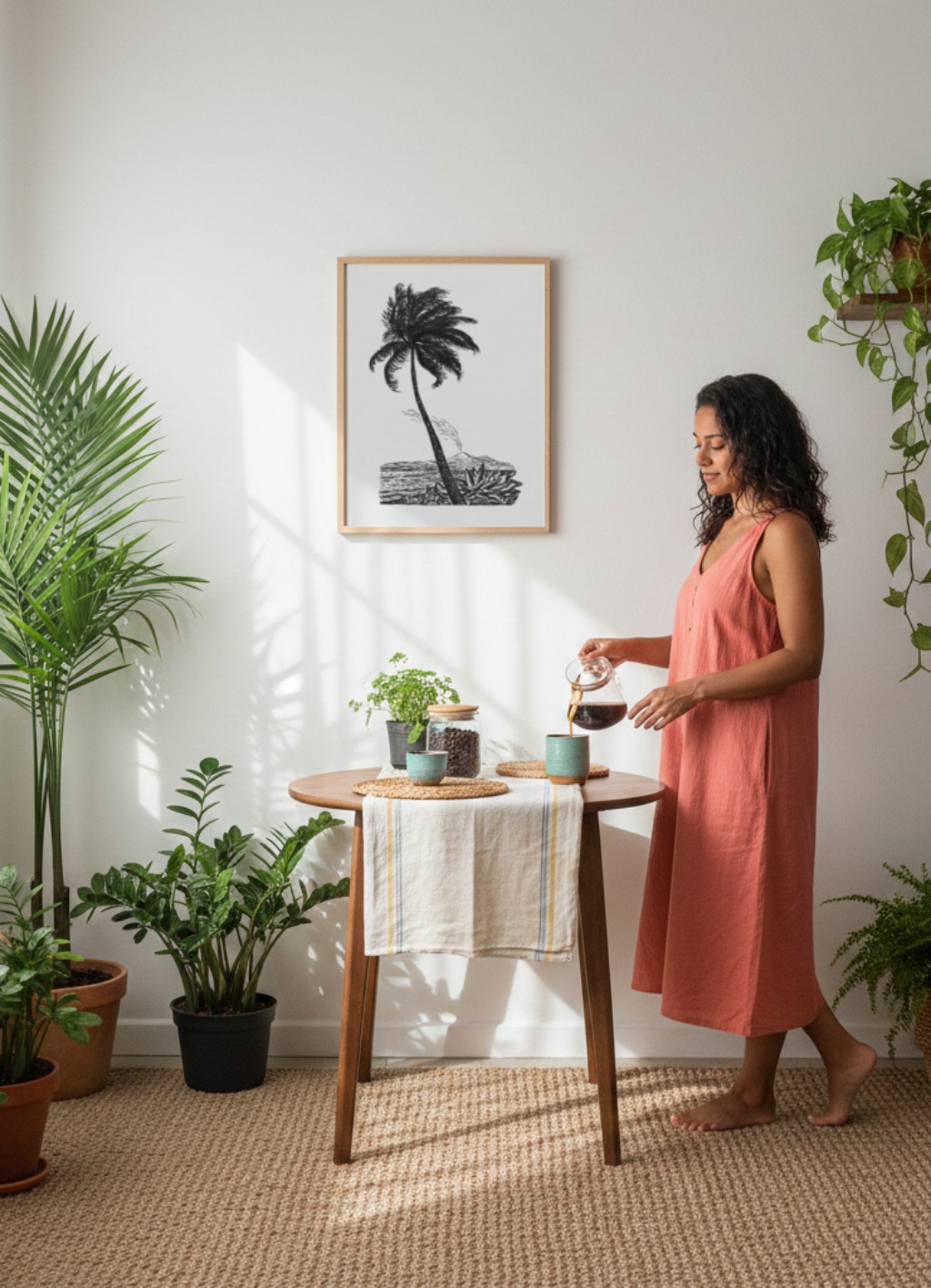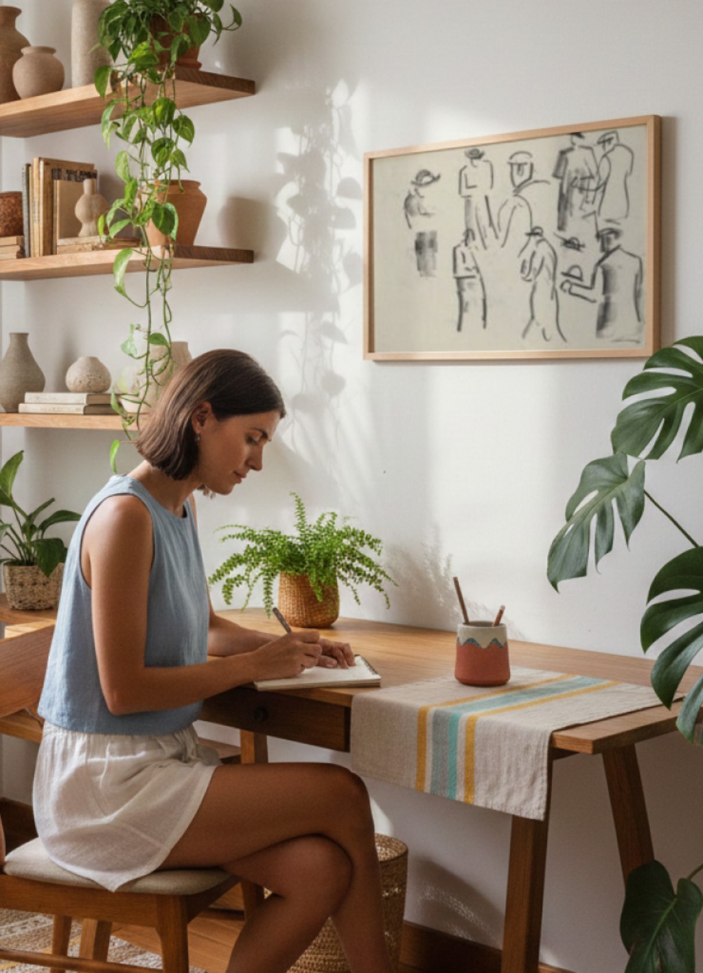 Desse mesmo período de expansão temática e trabalho gráfico vem Palm Tree with an Island — um desenho que destoa do repertório habitual de campos holandeses e figuras urbanas. A cena tropical, sintética e de traço solto, revela a dimensão menos documentada de Gestel como ilustrador e desenhista: alguém capaz de habitar registros completamente distintos sem perder a fluência. A palmeira isolada sobre a ilha tem algo de cartum refinado, de linguagem aplicada — e lembra que, para Gestel, o desenho nunca foi atividade menor ou separada da pintura.