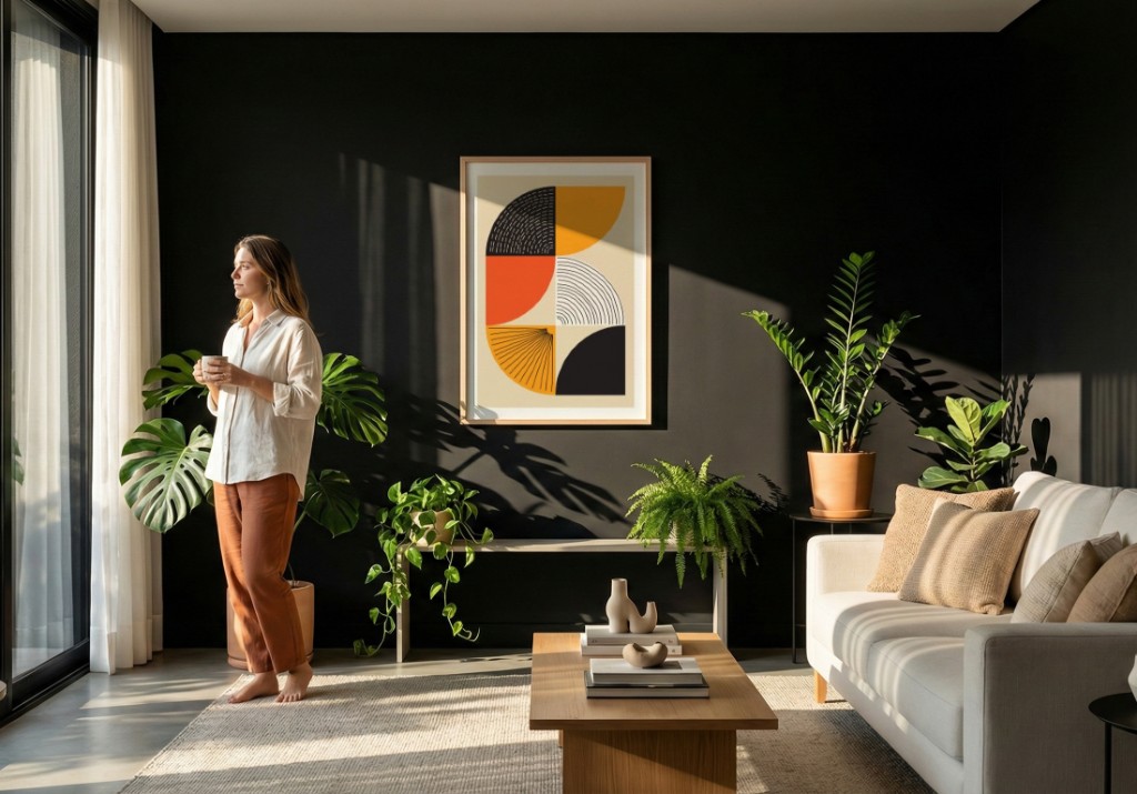 Paredes escuras estão em alta na decoração contemporânea, mas exigem atenção especial na escolha de quadros. O segredo está no contraste e na temperatura das cores.