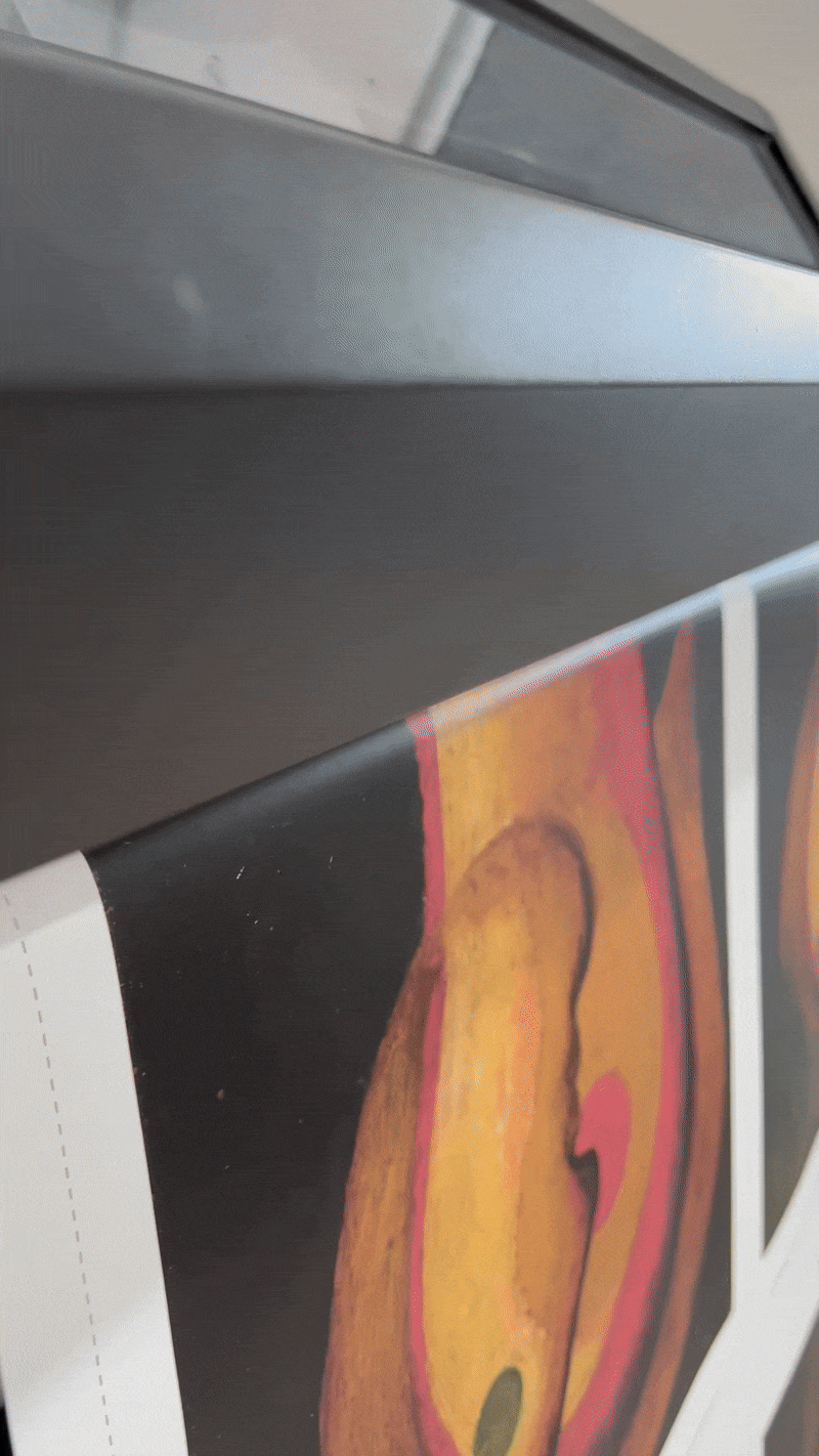 Molduras não são apenas suporte; elas fazem parte da composição cromática. Uma moldura Crua adiciona calor, Branca traz frieza, Freijó cria leveza, Preta gera sofisticação. A cor da moldura pode intensificar ou suavizar as cores do quadro.