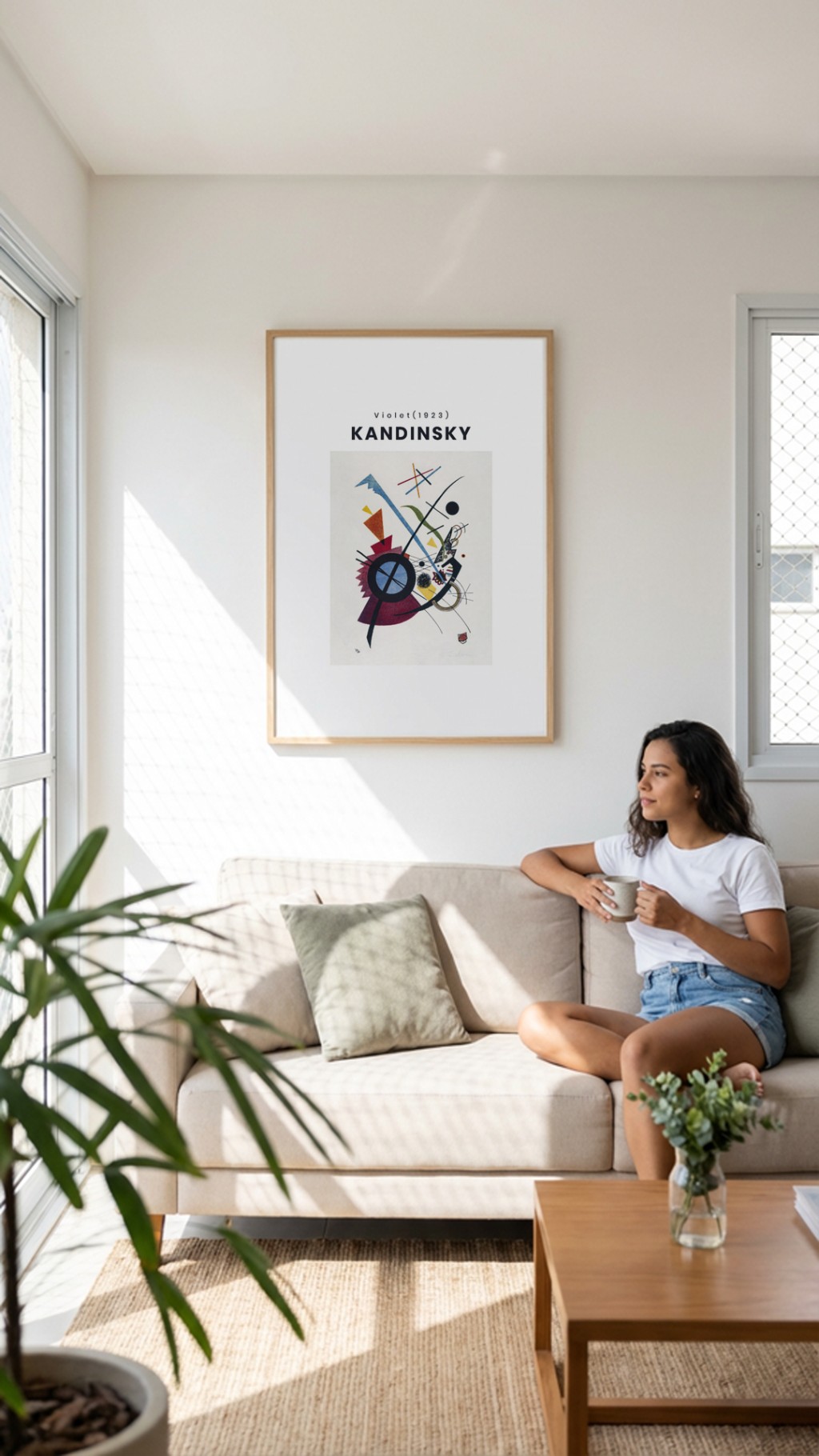 Colocar um Kandinsky geométrico e uma obra de abstração lírica orgânica lado a lado sem nenhum critério de unidade cria incoerência visual. O fato de ambas serem "abstratas" não as torna compatíveis. Os mesmos critérios de curadoria se aplicam: paleta, ritmo e família visual precisam ter algum ponto em comum.
