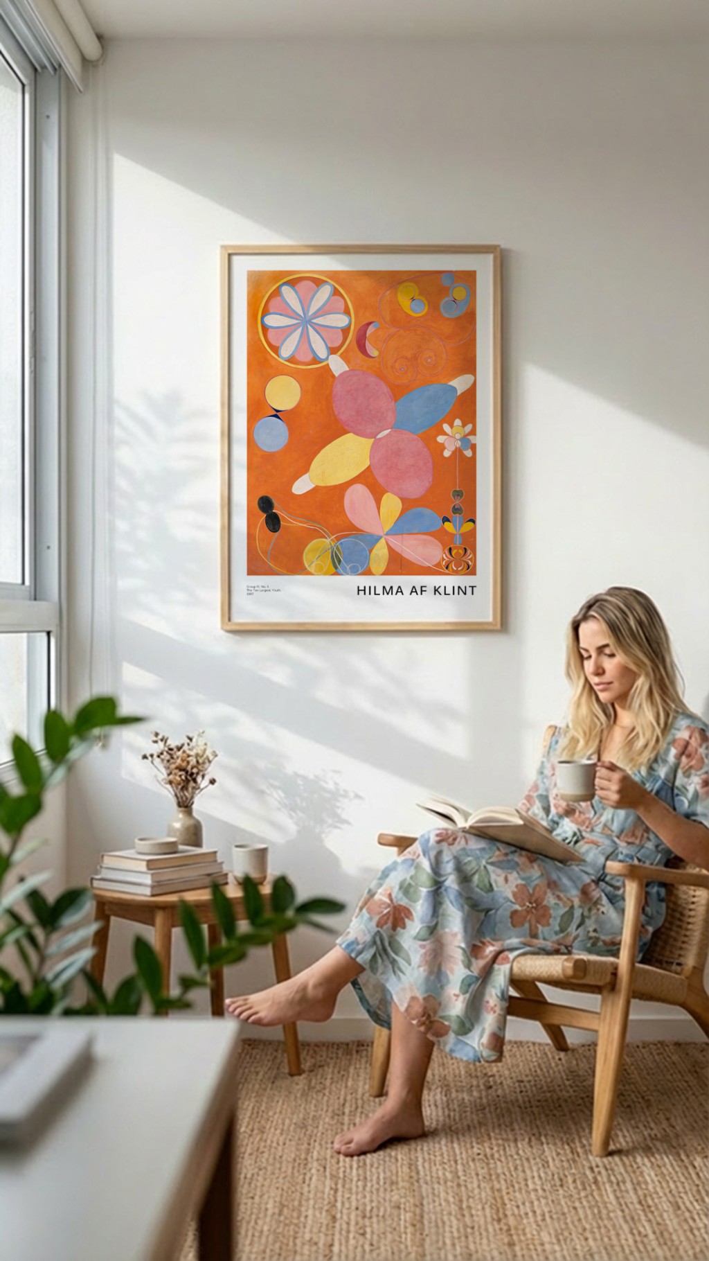 Entre a rigidez geométrica e a violência gestual existe uma terceira via: a abstração que usa formas orgânicas — curvas que lembram natureza, manchas de cor que respiram, composições que têm ritmo sem ter arestas. É o tipo mais decorativo da arte abstrata — menos intelectual que a geométrica, menos agressiva que o expressionismo. Muitas obras de Hilma af Klint pertencem a essa linguagem: espirais, formas que evocam plantas e organismos, paleta que oscila entre o místico e o natural.