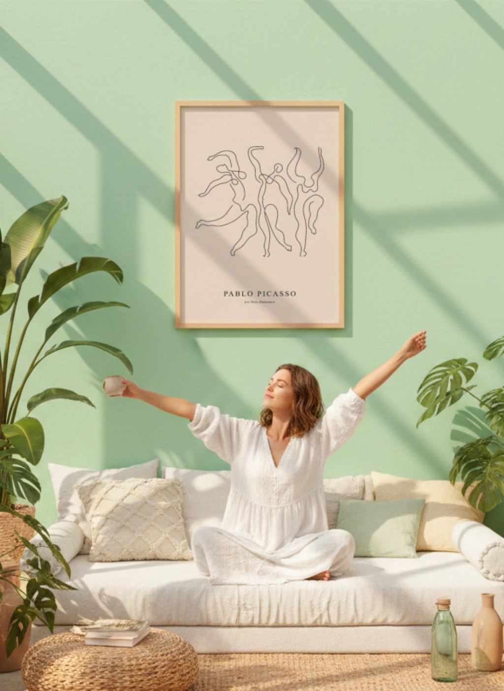 O neoclassicismo dos anos 1920 é Picasso se reconectando com os grandes mestres — com Ingres, com a escultura grega, com a monumentalidade clássica. As Três Graças (1923) mostra figuras femininas volumosas, quase escultóricas, numa composição que conversa diretamente com a tradição acadêmica que ele havia rejeitado aos dezoito anos. Não era uma rendição: era uma conversa com a história feita por alguém que agora a dominava completamente.