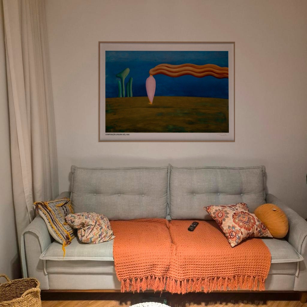Nem grande demais, nem pequeno demais. Definir o tamanho correto de um quadro decorativo é crucial para o equilíbrio visual do ambiente. A consultoria dimensiona as peças de forma proporcional à largura e altura da parede, considerando também o móvel que estará abaixo da obra.