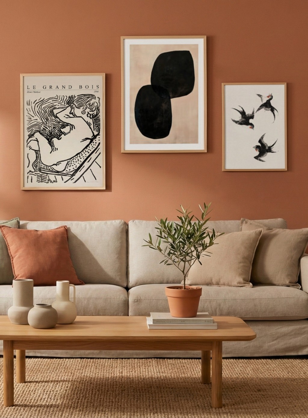 As artes minimalistas ganharam sofisticação particular neste ano. Não se tratava mais daquele minimalismo austero e conceitual dos anos 2010, mas de obras que combinavam simplicidade formal com presença marcante. Linhas orgânicas, formas abstratas que sugerem sem explicar, paletas restritas mas expressivas — esse foi o território onde a arte decorativa encontrou seu ponto alto em 2025.