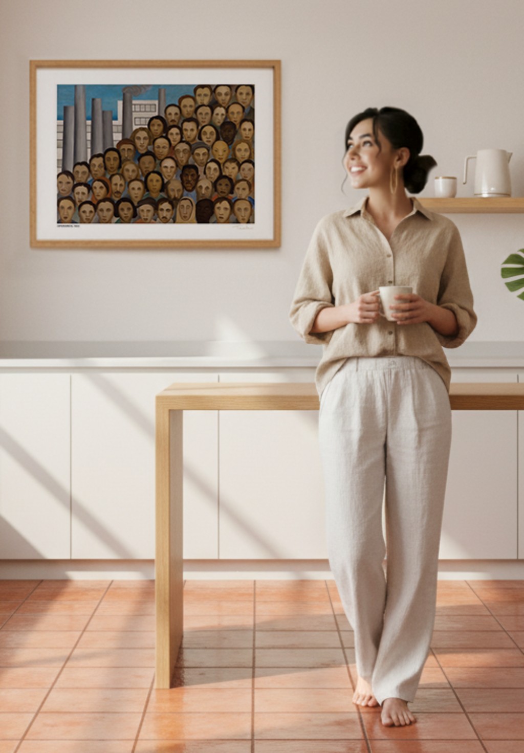 Operários, de 1933, é a obra-prima desse período. A tela apresenta rostos de trabalhadores de diferentes etnias, alinhados em primeiro plano, com chaminés industriais ao fundo. A composição é compacta, quase claustrofóbica. Os rostos, individualizados mas formando uma massa, expressam cansaço, resignação, mas também uma certa dignidade. As cores agora são mais sóbrias, terrosas, com menos daquela luminosidade tropical das fases anteriores. Tarsila estava pintando o Brasil da industrialização acelerada, da urbanização problemática, da exploração do trabalho.