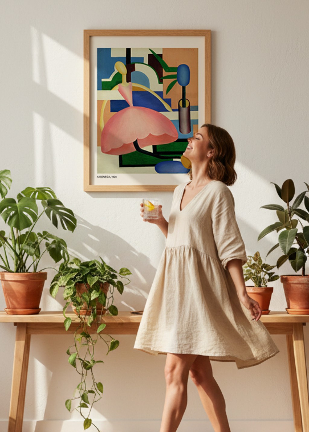 A Boneca, com sua paleta suave e formas arredondadas, revela um lado mais intimista da pintora. O objeto infantil é tratado com ternura, mas também com a mesma atenção formal que caracterizava suas obras mais ambiciosas.