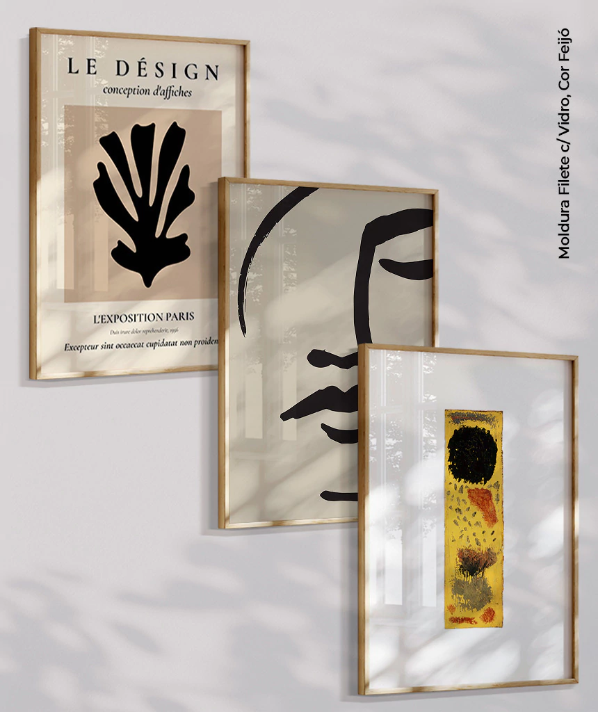 Moldura caixa é aquela moldura padrão (a mais comum de ser vista emoldurando gravuras e pôsteres). Tem 2,0 cm de espessura (olhando de frente) e 3,0 cm de profundidade (olhando de lado). Ideal também para quem deseja esconder quadros de energia elétrica.