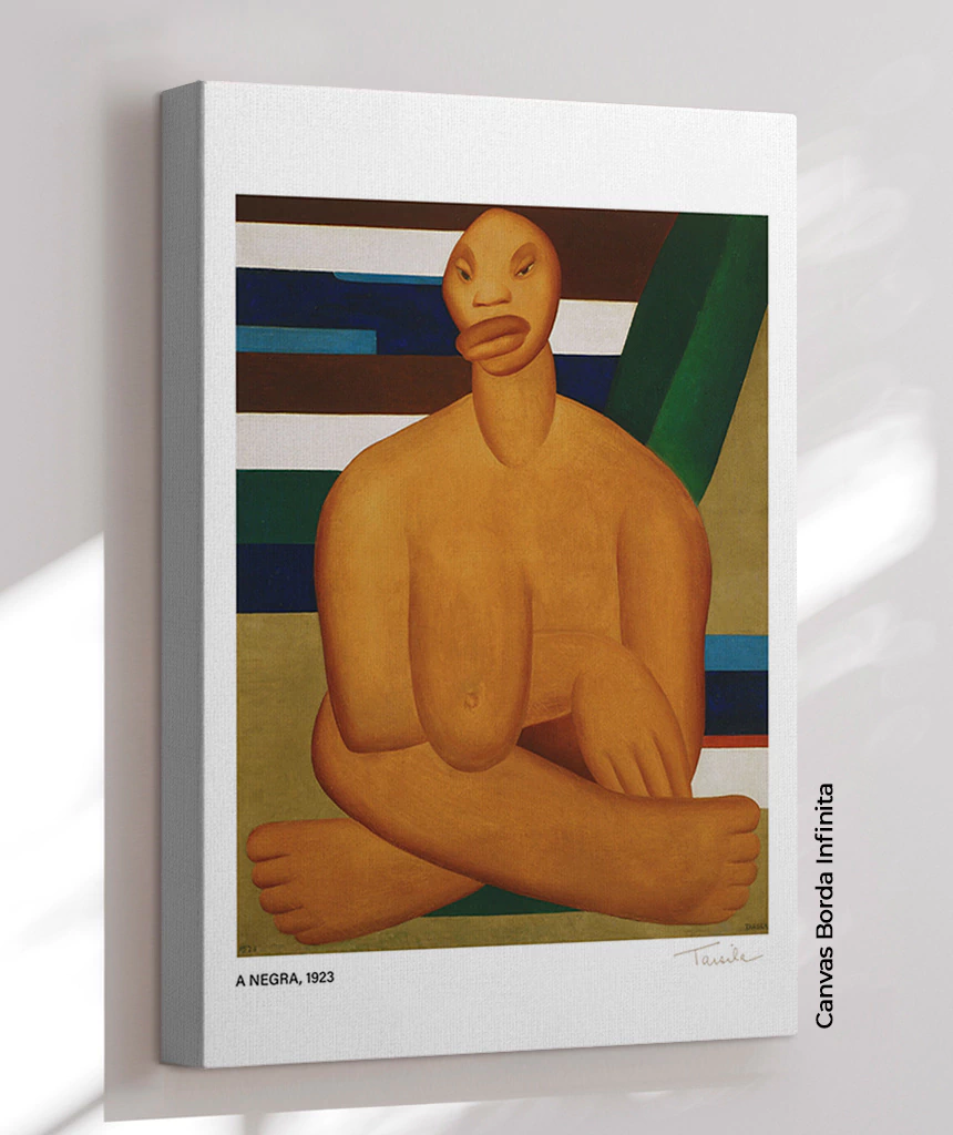 "A Negra" é um manifesto visual da força e ancestralidade brasileira. Com traços marcantes e formas robustas, Tarsila celebra a identidade nacional com ousadia e respeito, tornando esta obra perfeita para espaços que valorizam presença, história e autenticidade.